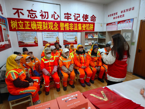 临近年关,为深入贯彻落实大连市处置非法集资领导小组办公室有关文件要求,结合新概念的新兴非法集资手段,“志愿服务队”向环卫工人开展了金融风险预警提示和宣传教育,通过现场专人讲解、分发宣传折页等方式,帮助其在春节关键节点提升消费者权益保护的意识,为持续提升其识非、防非能力。
