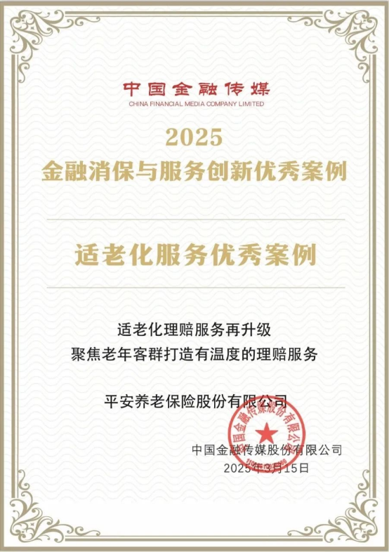 在保险理赔服务方面,率先推出线上全流程自助理赔功能,有助于智慧理赔时代下更好地满足中老年群体理赔需求。平安养老险2024年度理赔服务报告显示,全年近90%的理赔案件由客户通过好福利APP自助办理,全程无人工干预自动结案133万件,最快1秒结案,真正做到随时随地、极速理赔,省心又省时。同时,考虑到老年人在操作自助理赔服务时,受到视力衰退、新技术适应能力减缓等因素影响,独立使用理赔服务面临多重障碍,公司创新性地针对老年人推出远程授权服务,可轻松授权他人辅助完成理赔申请,仅需通过人脸识别或签字等方式认证授权,后续操作均可由代办人协助完成,极大地简化了流程、降低了老年人自助提交理赔申请的难度,“适老化理赔服务再升级,聚焦老年客群打造有温度的理赔服务”这一项目成功入选2025金融消保与服务创新适老化服务优秀案例。