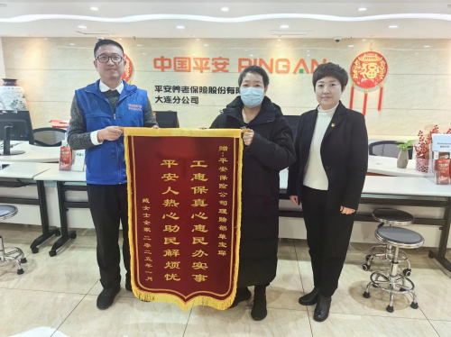 1月22日,正值寒冬腊月传统小年,辽宁省大连市臧女士却特地前往平安养老险大连分公司,为理赔人员单宝琛送来锦旗以表感谢,感谢他在理赔过程中的耐心细致,专业高效,责任担当的服务。