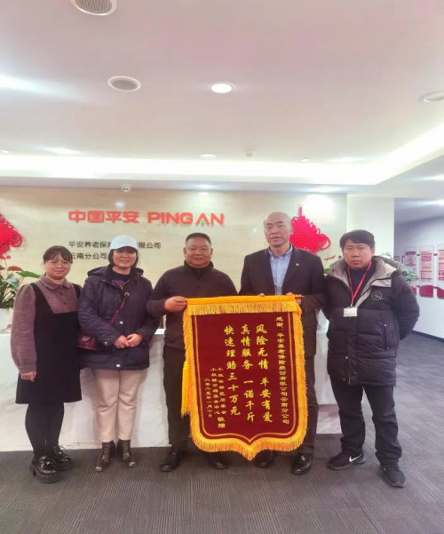在祖国大地另一端的彩云之南,平安养老险也收获了一份肯定和温暖。春节前夕,平安养老险云南分公司因成功处理一起理赔案件,为一个陷入悲痛的家庭送去了经济上的支持,收到客户送来的锦旗,上绣“风险无情平安有爱,真情服务一诺千金”,语言简洁质朴,却充分体现保险温度。